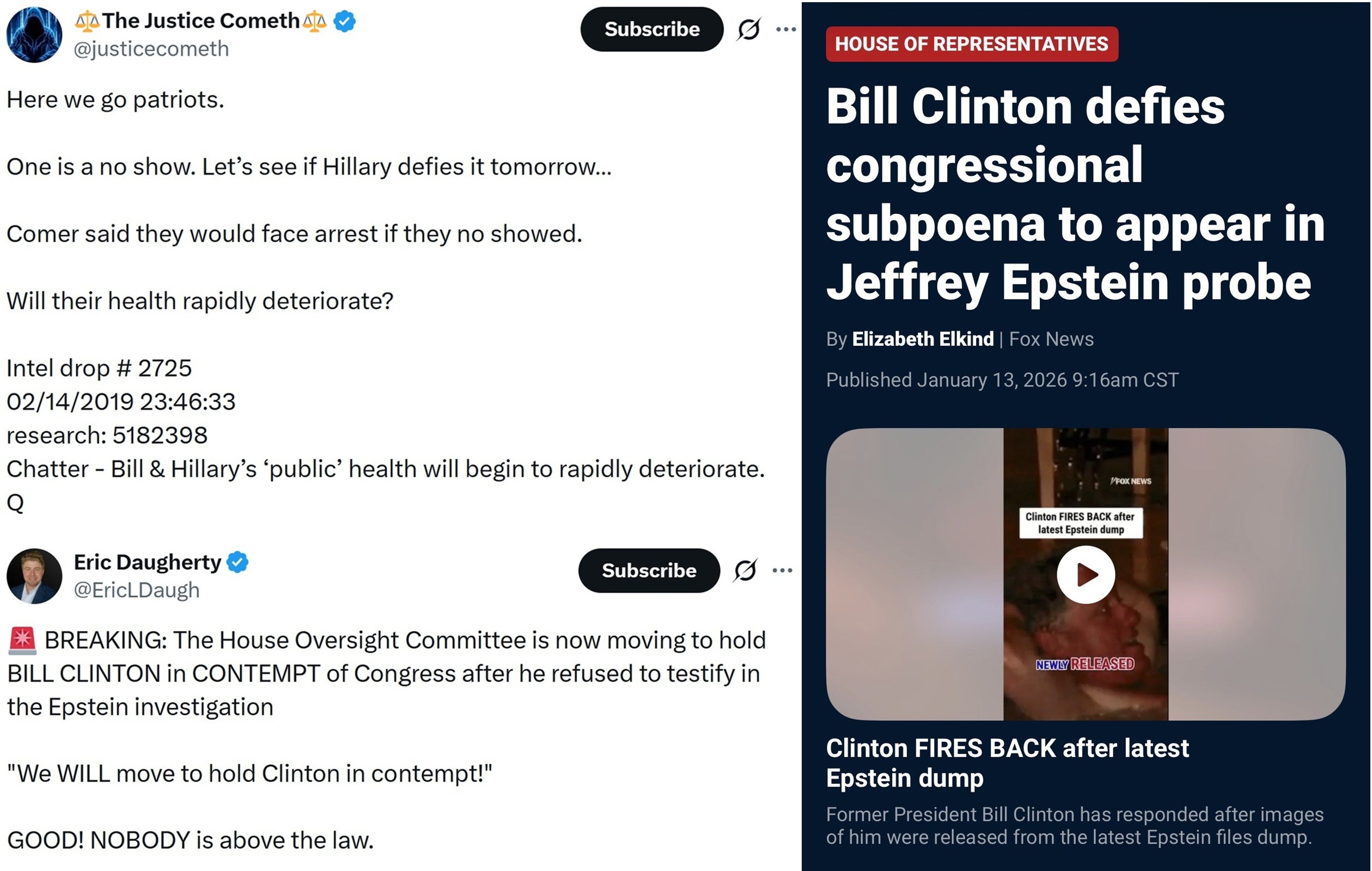 "The House Oversight Committee is now moving to hold BILL CLINTON in CONTEMPT of Congress after he refused to testify in the Epstein investigation"