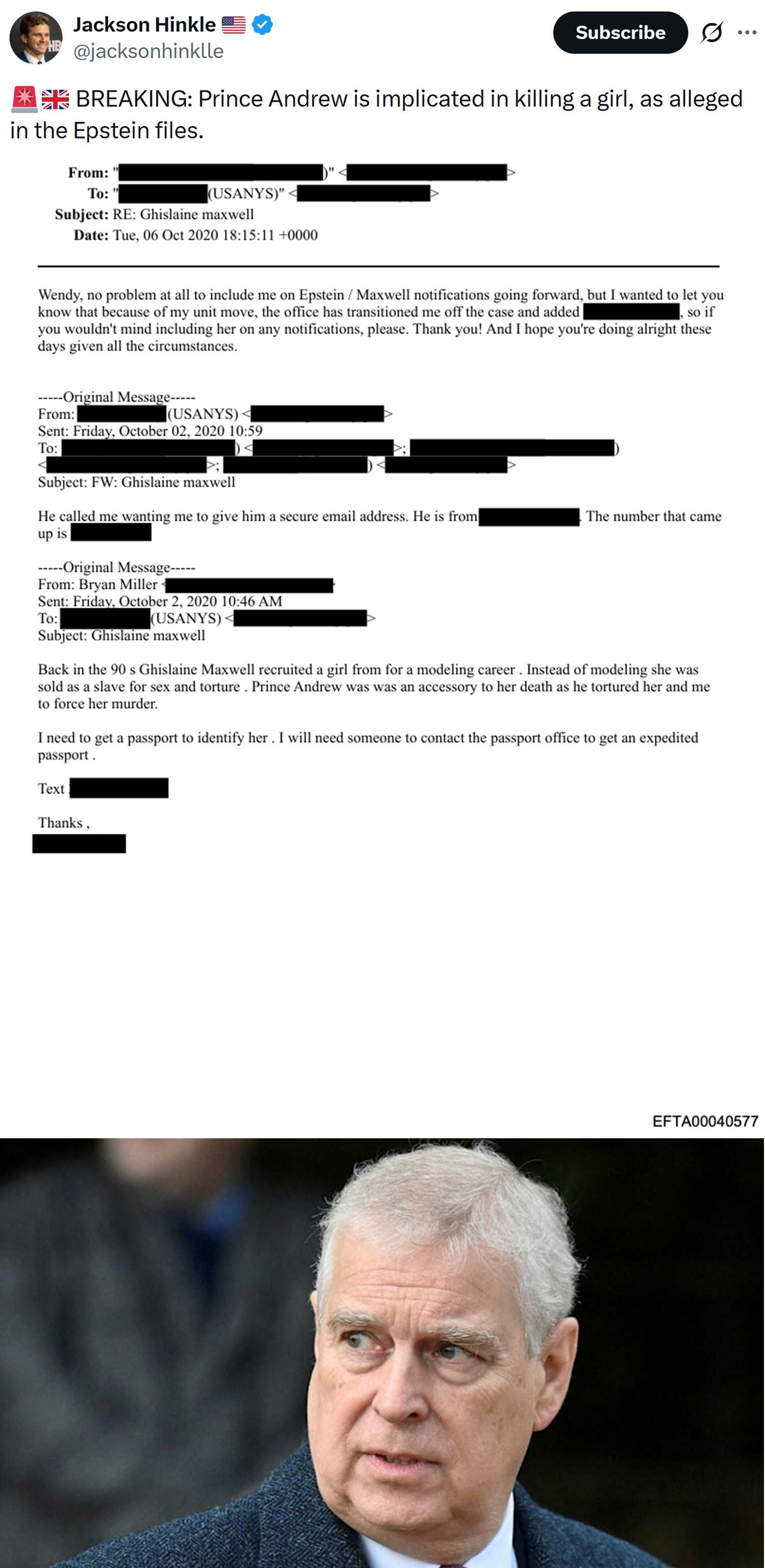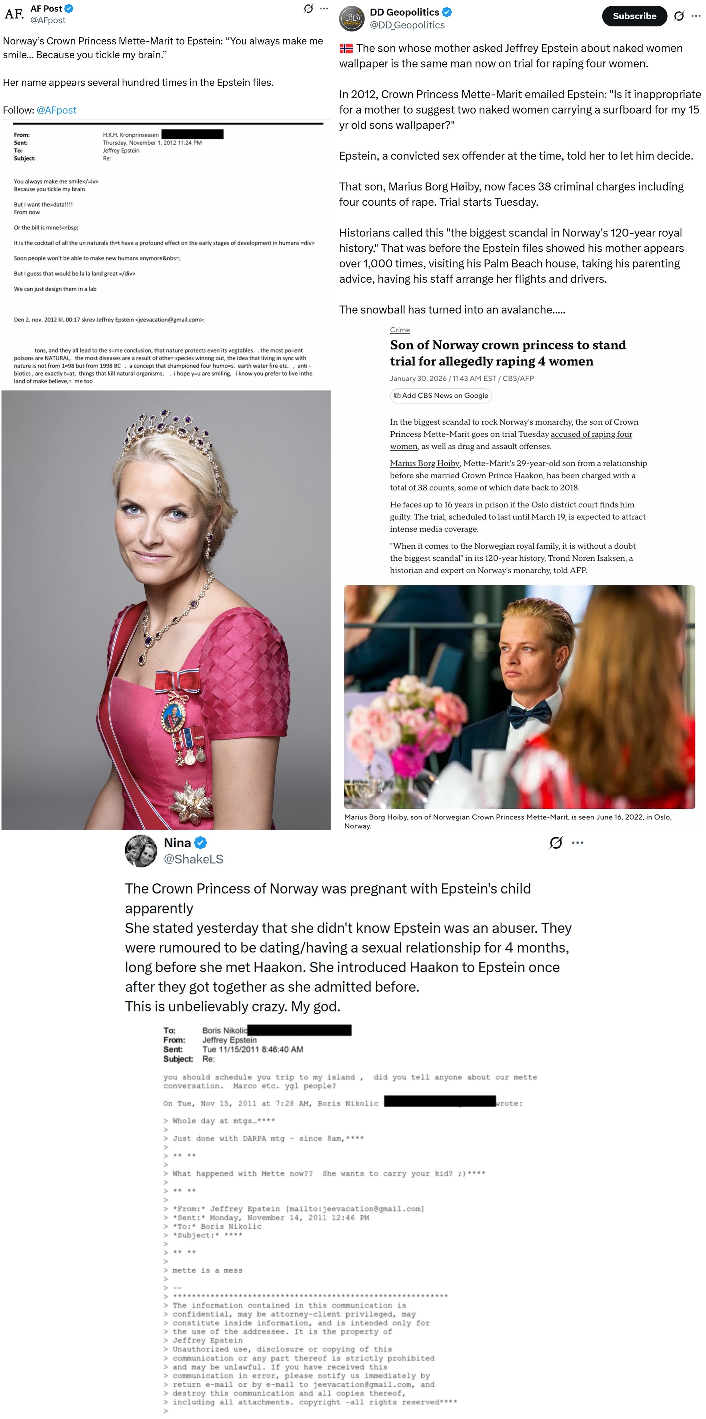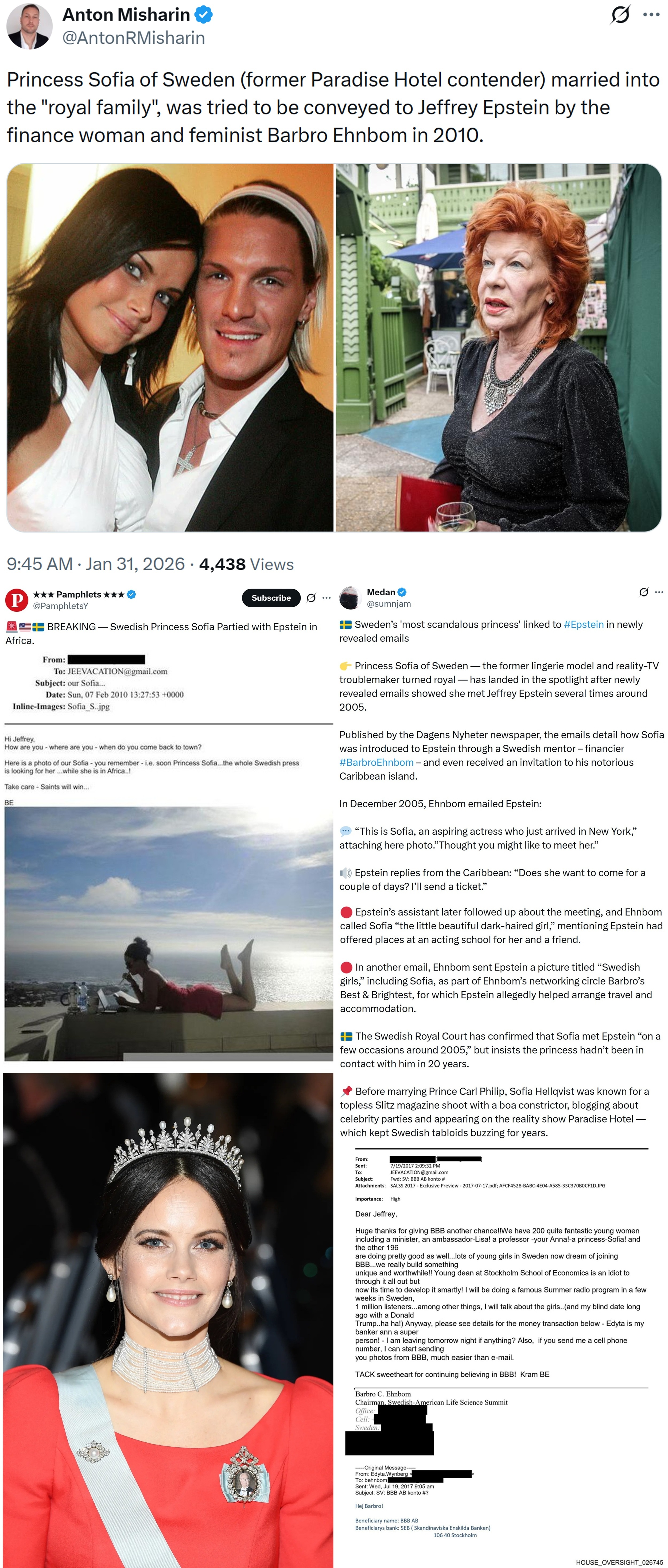 Some Royal stuff from the Epstein files, concerning Princess Sofia of Sweden, The Crown Princess Mette-Marit of Norway and former prince Andrew.
