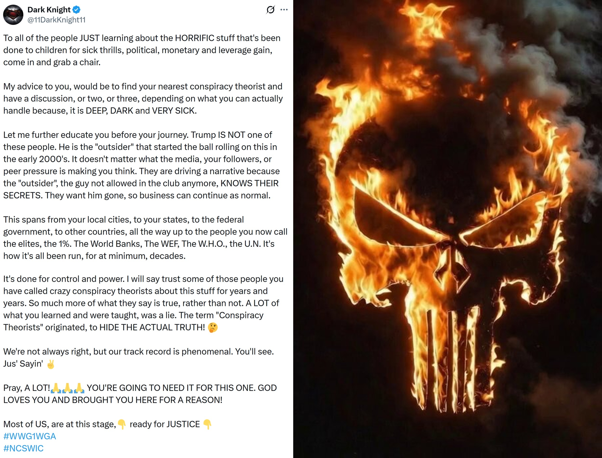 "To all of the people JUST learning about the HORRIFIC stuff that's been done to children for sick thrills, political, monetary and leverage gain, come in and grab a chair..."