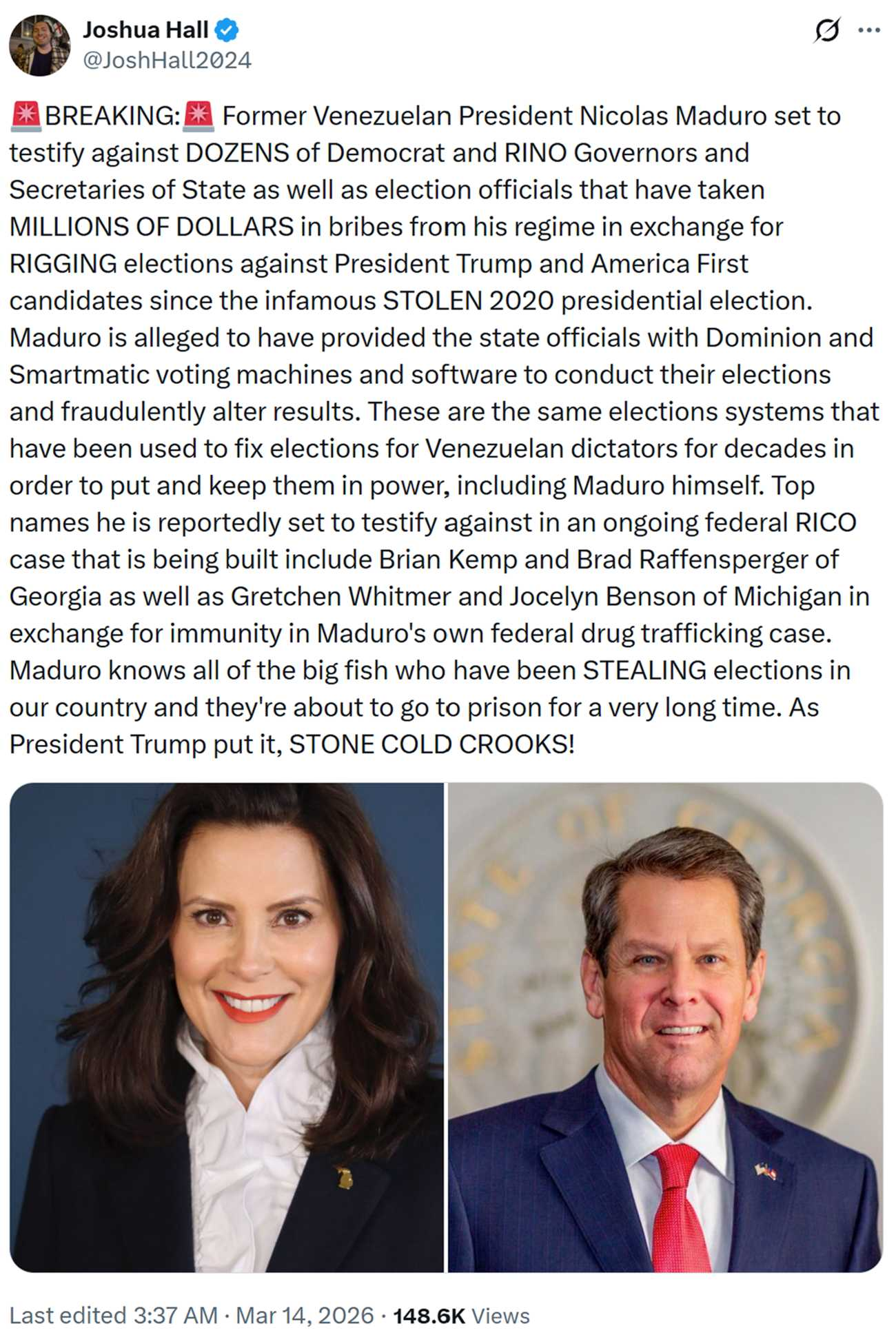 "Former Venezuelan President Nicolas Maduro set to testify against DOZENS of Democrat and RINO Governors and Secretaries of State as well as election officials that have taken MILLIONS OF DOLLARS in bribes from his regime in exchange for RIGGING elections against President Trump and America First candidates since the infamous STOLEN 2020 presidential election."